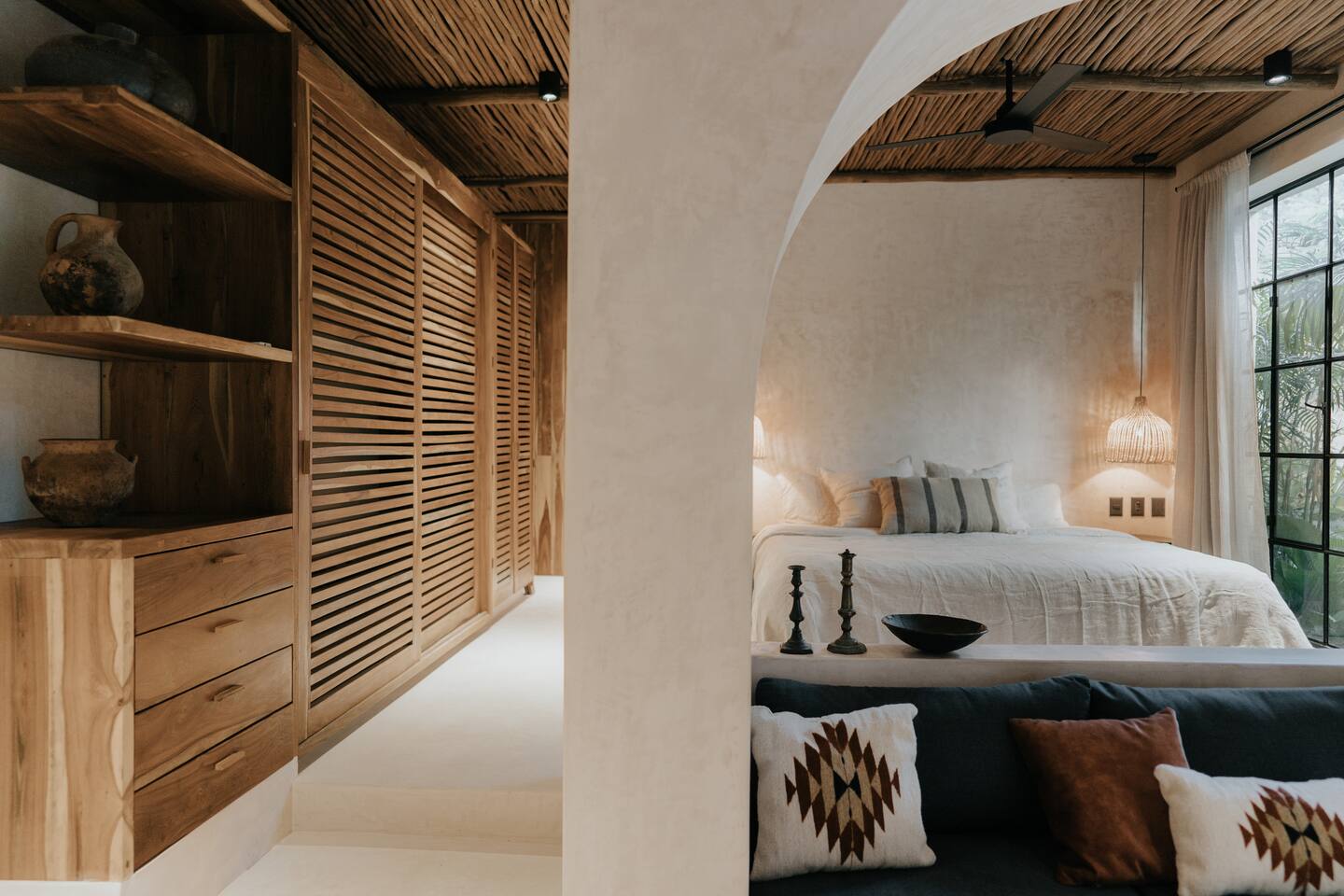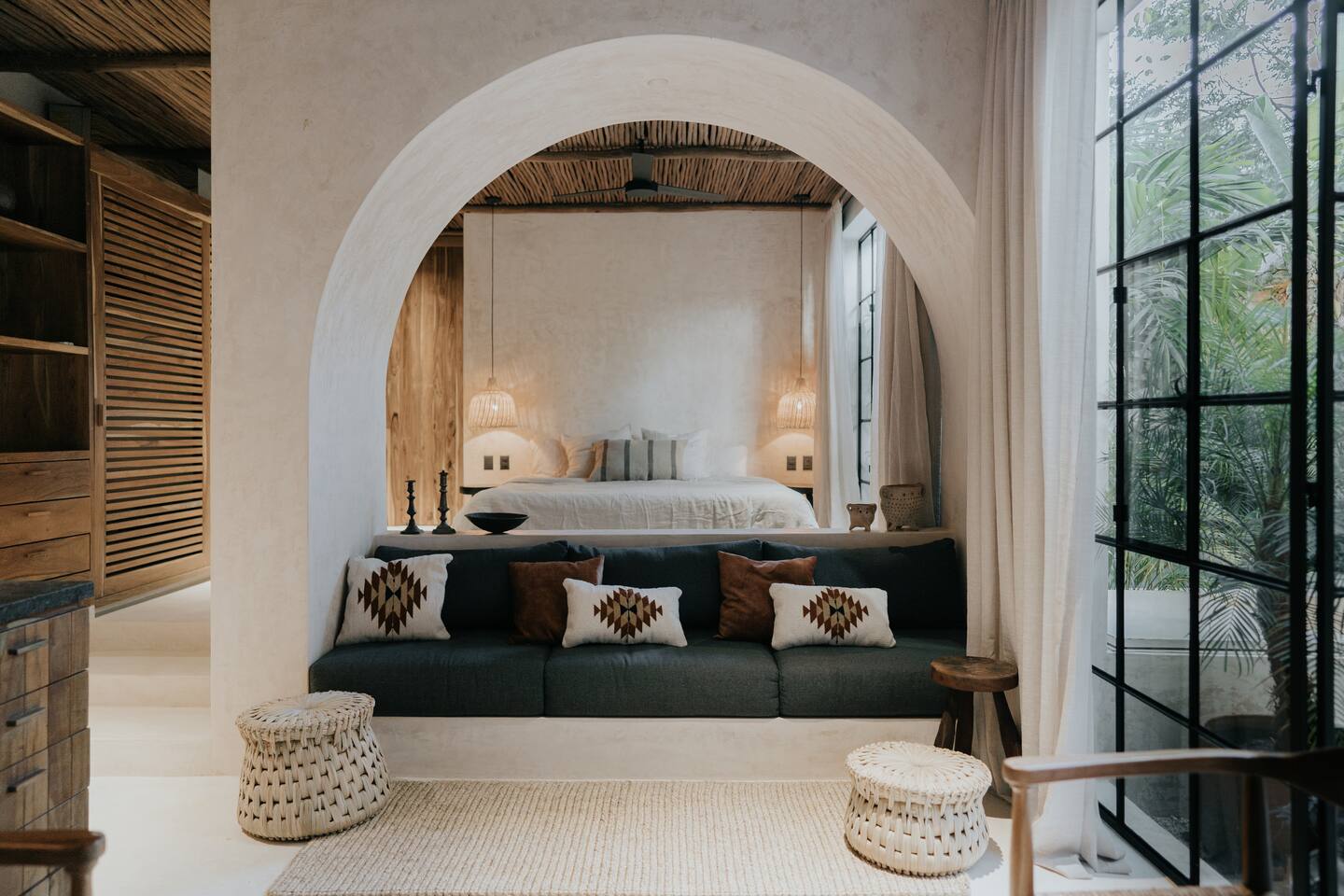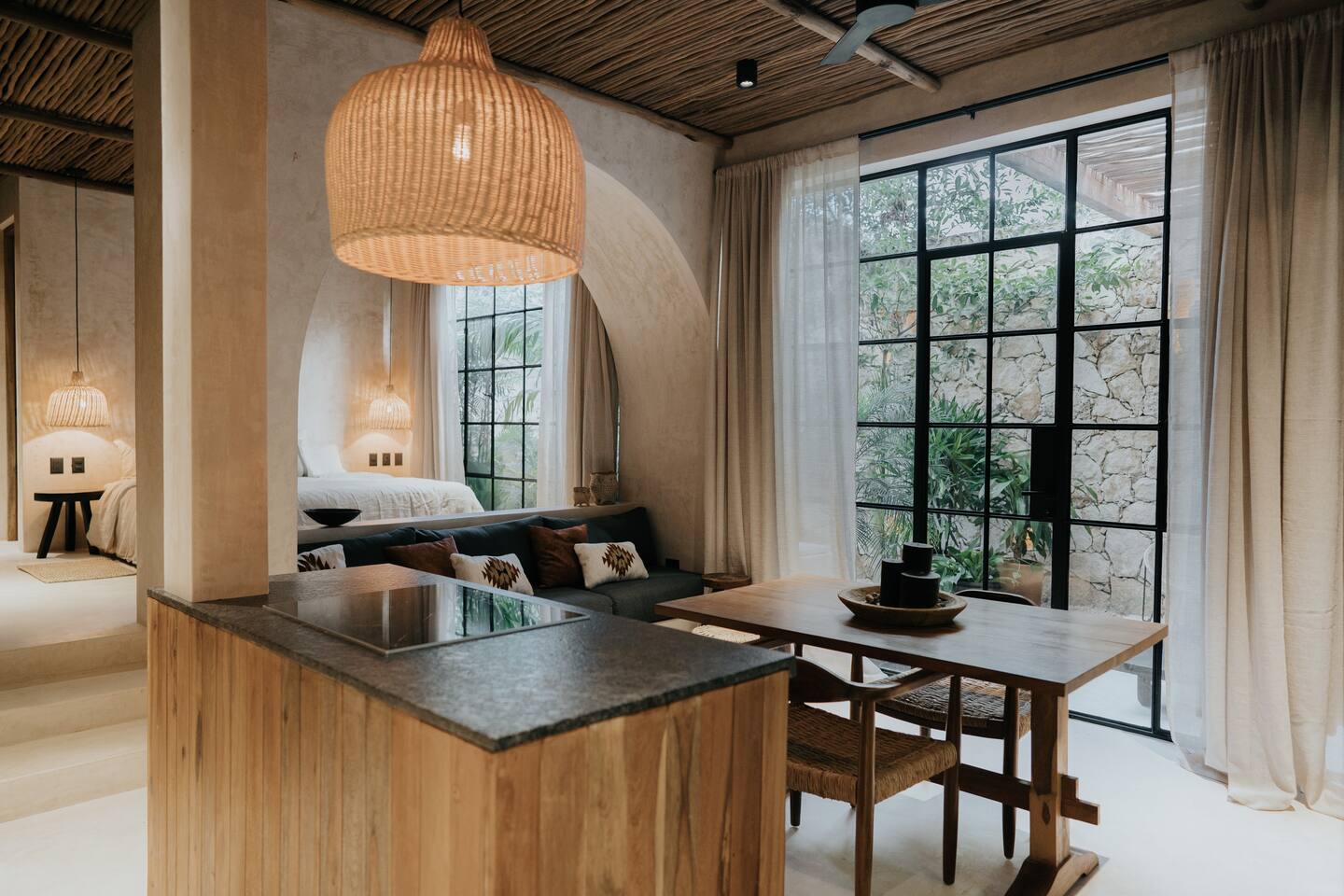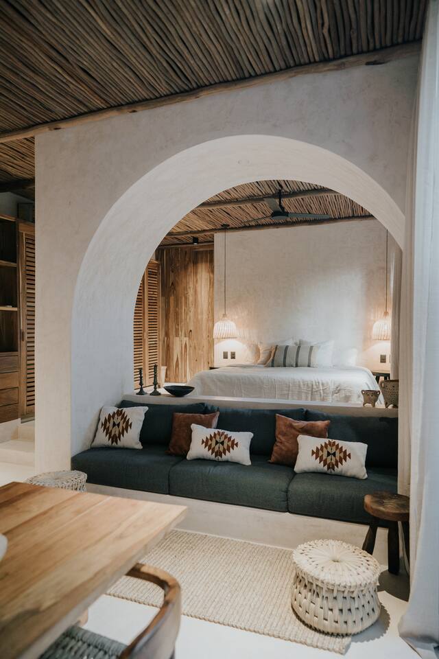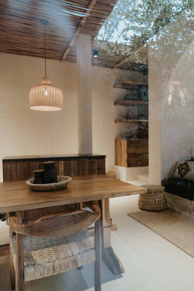 Hermoso y privado Apartamento de Diseño perfecto para una pareja en un edificio con arquitectura única. En la zona más interesante de Tulum, ubicado en una esquina tranquila, podrás experimentar uno de los apartamentos de diseño más hermosos de Tulum.